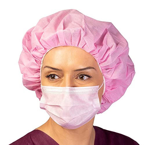 100 Pcs Tronex Pink Disposable 3 PLY SMS Heavy Duty Bouffant Hair Net Medical Surgical Caps Bakery Protective Head Hair Cover 24” Nurse Hairnets