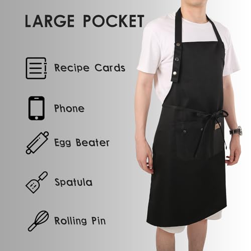 Yuubin Extra Large Aprons for Men, Adjustable Button Bib Apron with 3 Pockets Chef Cooking Kitchen Aprons Women,Water & Oil Resistant