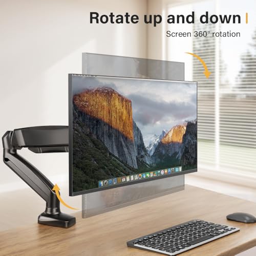 Single Monitor Arm for 13’’-32’’ Screens Full Adjustable Monitor Desk Mount Height Adjustable Swivel Monitor Mount with Tilting Rotating Universal Desk Mount VESA 75×75 or 100x100mm (Black)