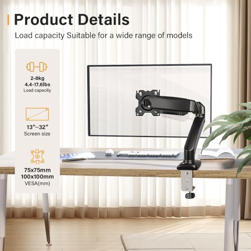 Full Adjustable Monitor Desk Mount, Monitor arm desk mount, monitor stand, monitor desk mount, swivel monitor arm for 13~32 inch Screens, VESA 75mm or 100mm , Tool Free Height Adjustable full motion desk mount With Tilt Swivel Rotate Monitor, Increased Load Capacity from 4.5- 17.6 lbs.